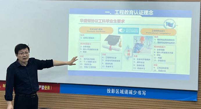 交流会上,张学昌教授从工程教育认证理论、以学生为中心、以成果为导向、持续改进机制、支撑条件五个方向,详细介绍了机能学院的经验做法和个人的工作体会。同时,会议就课程建设、毕业要求、课程体系的持续改进、以及学院专业认证中存在困难开展了深入探讨。
