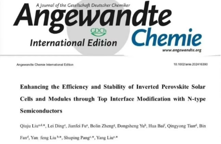 近日,我校材料学院刘洋博士与协鑫刘秋菊博士合作,在国际顶级期刊Angew. Chem. Int. Ed.发表题为“N型半导体修饰顶部界面提升倒置钙钛矿太阳能电池及组件的效率与稳定性”的研究工作。《德国应用化学》(Angew. Chem. Int. Ed.)创刊于1888年,是德国化学学会(GDCh)的官方期刊并由Wiley–VCH出版。期刊上收录的学术论文主要是化学领域具有重要原创性、突破性、新颖性的研究成果,是国际化学领域最具影响力的刊物之一,Top期刊,中科院1区。该工作得到了协鑫光电的鼎力支持以及嘉兴大学刘岩峰博士和中科院青岛能源所逄淑平研究员的帮助。昆山协鑫光电材料有限公司是钙钛矿光伏领域的龙头企业,公司专注于钙钛矿太阳能组件的研发、生产,经营目标是提供可实现光伏发电平价上网的太阳能电池板,使清洁能源成为能源市场的主流。