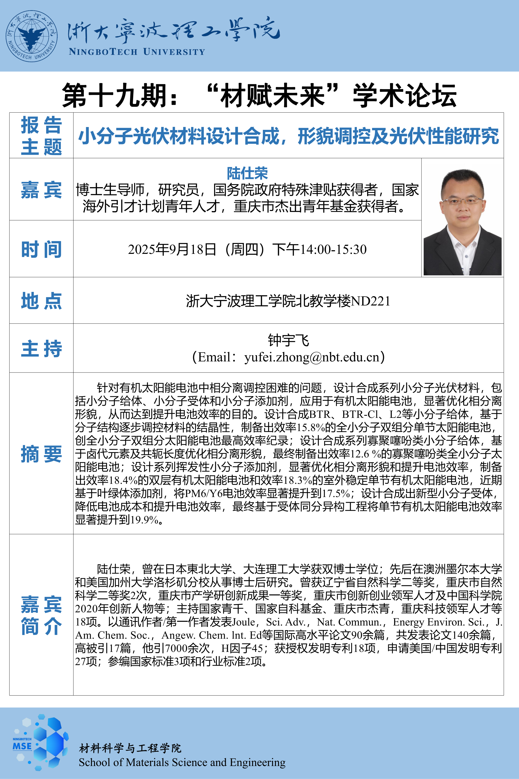 主题:小分子光伏材料设计合成,形貌调控及光伏性能研究